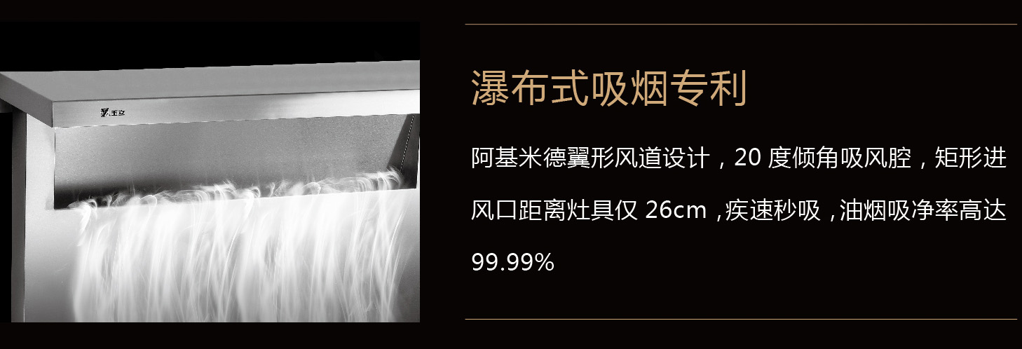 阿基米德翼型風道設(shè)計,20度傾角吸風腔,矩形進風口距離灶具僅26cm,疾速秒吸,油煙吸凈率高達99.99%。