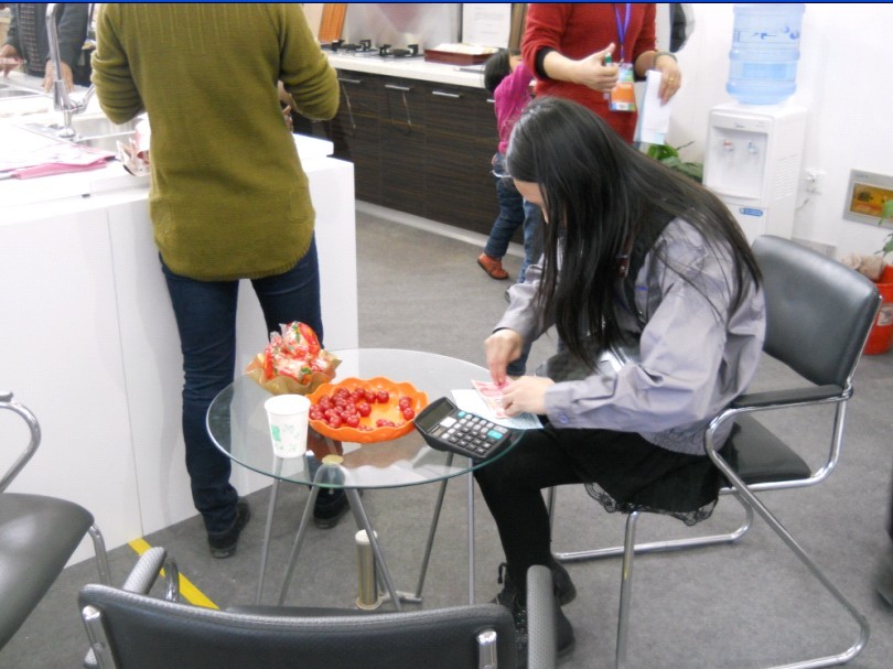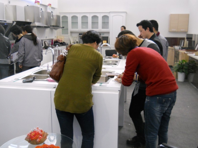 (邊傾聽(tīng)講解廚電產(chǎn)品邊下訂單的客戶(hù))